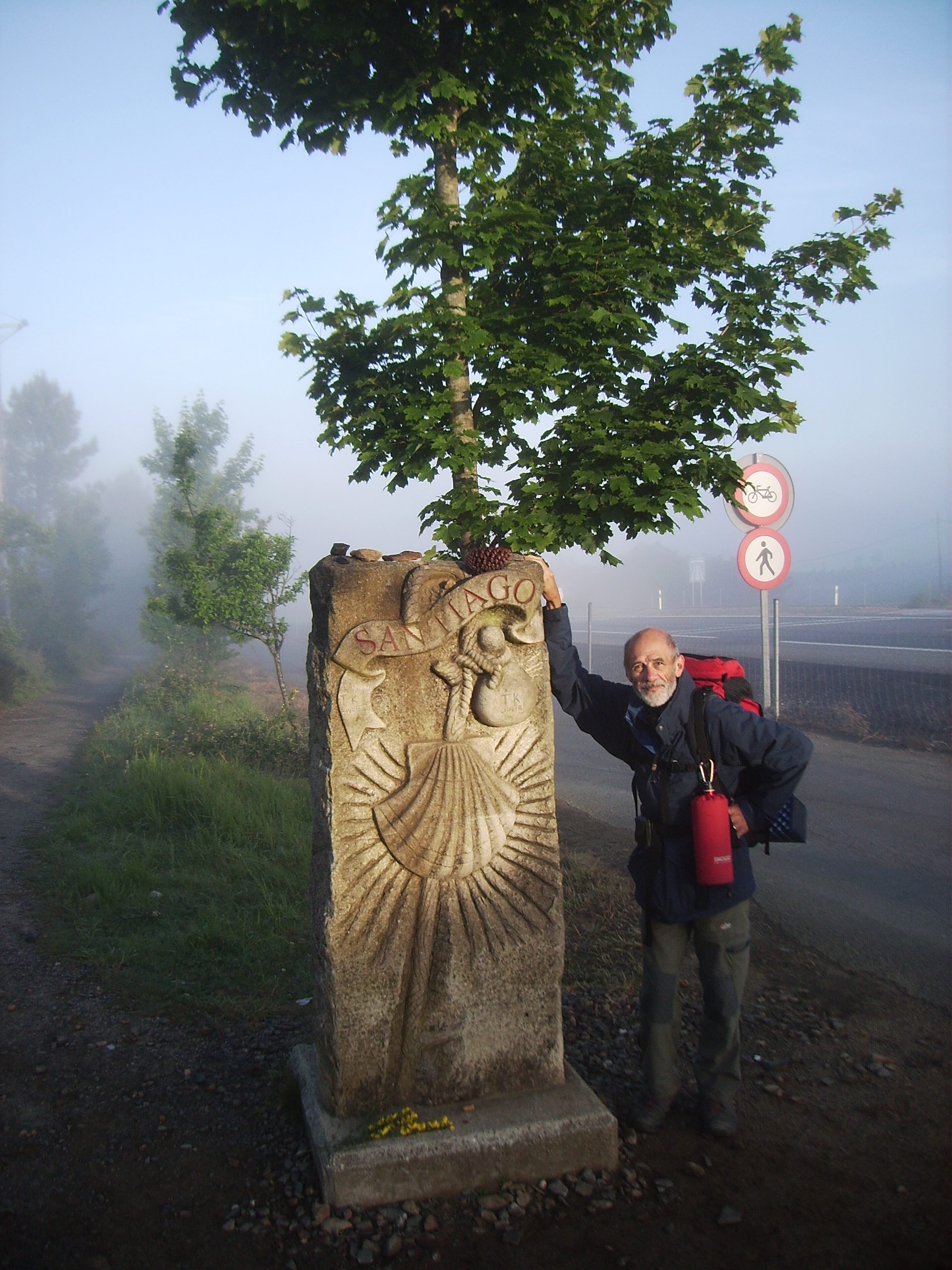 « Plomeur dans le finistère. Nous sommes le samedi 1er Avril. Je contrôle mon équipement, gorge et lacets noués. J’y suis. Kilomètre zéro. Un rêve qui devient lucide. Le mental n’est plus agité. Face à moi même, à la route, aux chemins et aux rencontres. J’étreins la femme de ma vie. Le premier pas me serre le coeur… mais je suis prêt…Saint Jacques…me voilà«